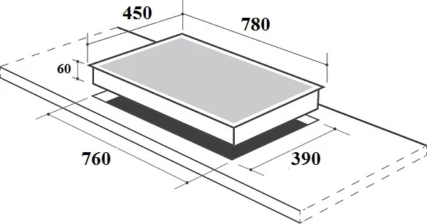 • Kích thước khoét đá: 760x390mm