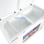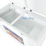 – Kiểu dáng: tủ đông nằm có 1 ngăn đông và 2 cánh cửa, thiết kế thanh lịch với gam màu trắng tươi sáng, trang trí cho căn phòng bếp gia đình, không gian cửa hàng sang trọng, hiện đại hơn.
